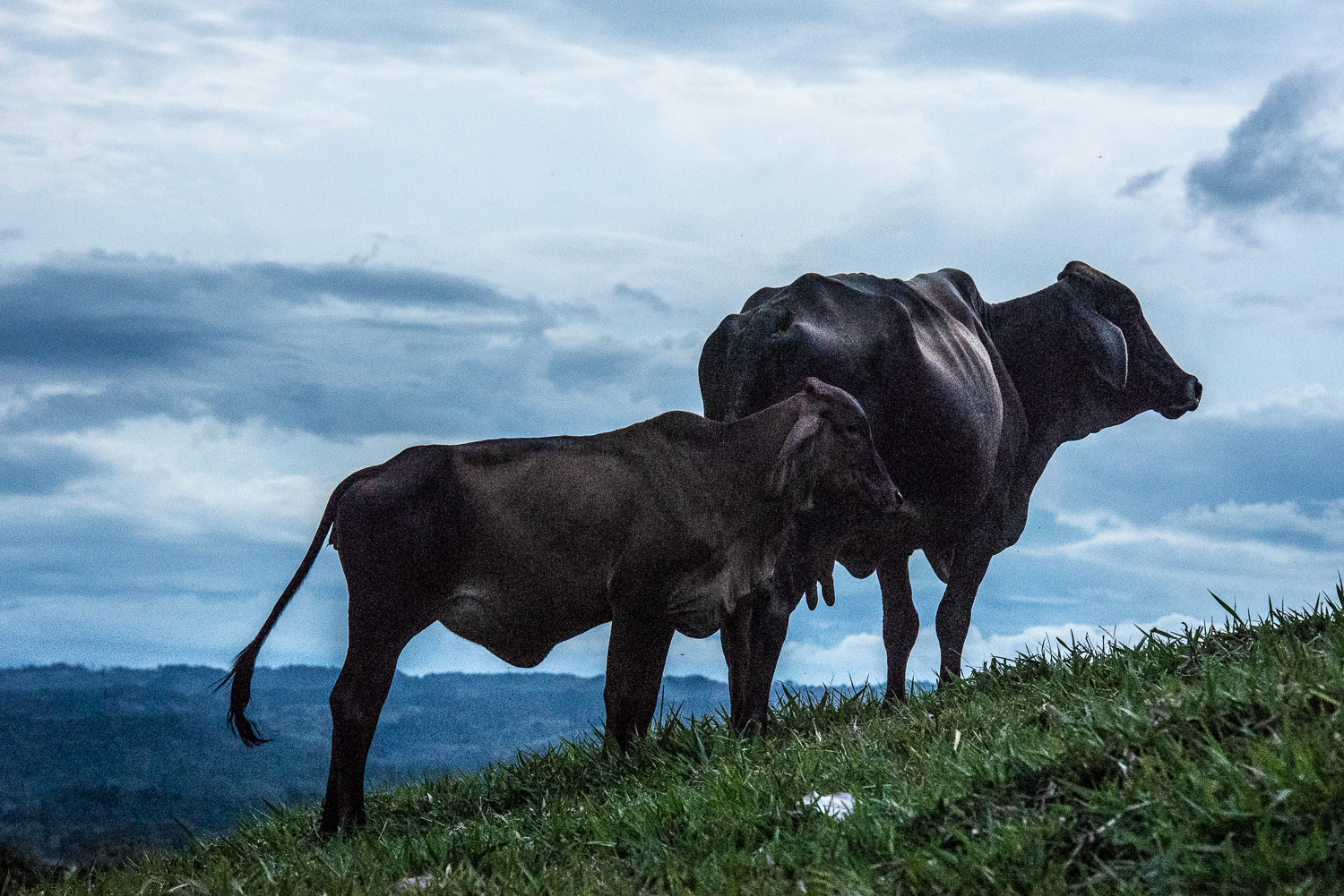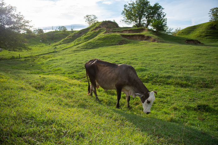 | Then the oil derricks give way to cattle plantations -- a lot of cows, and a ton of intensely beautiful rolling green fields of thick grass. |