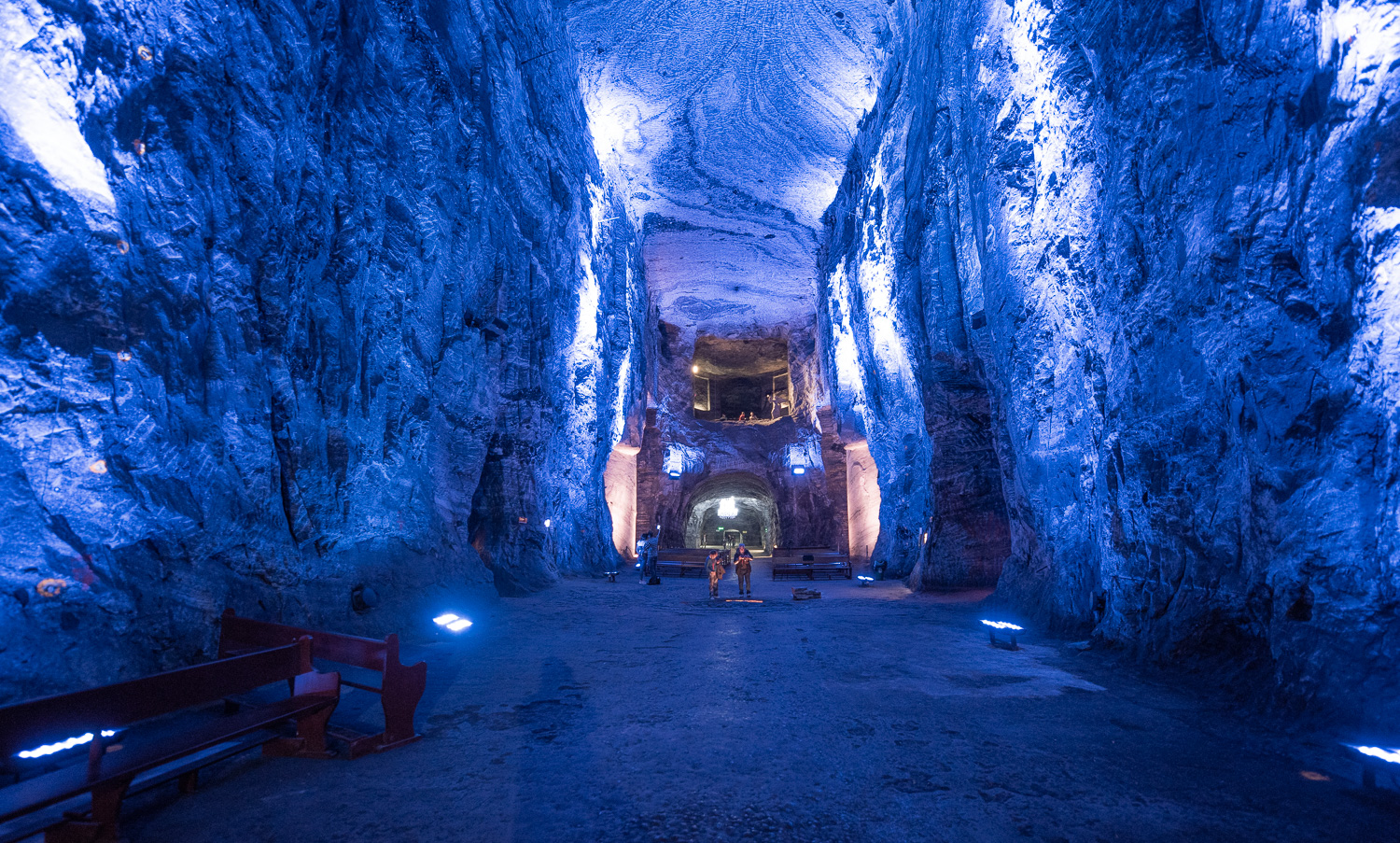 | It's all carved from natural halite, the seams of which you can see in the walls and ceiling. Not surprisingly, it hosts the world's largest underground crucifix. |