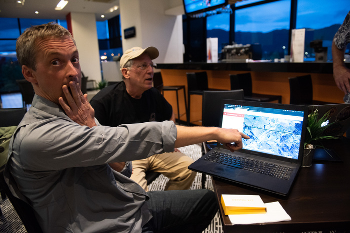 | Field trip: Meanwhile, far away from us on the eastern side, Alfonso Caycedo's group is ready to observe on their line. (Photo by Alfonso.) |