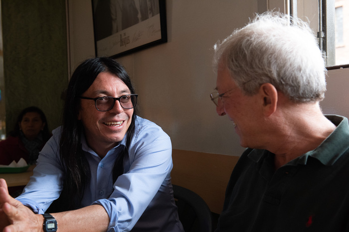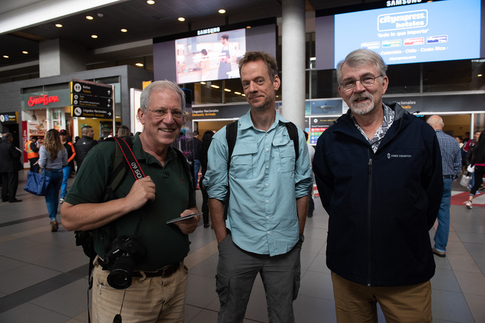 | Our leader Rodrigo Leiva (SwRI-Boulder), along with Aart Olsen (amateur from Champaign-Urbana). Check out those mountains behind us! We're enjoying the cool, cloudy weather of Bogota. |