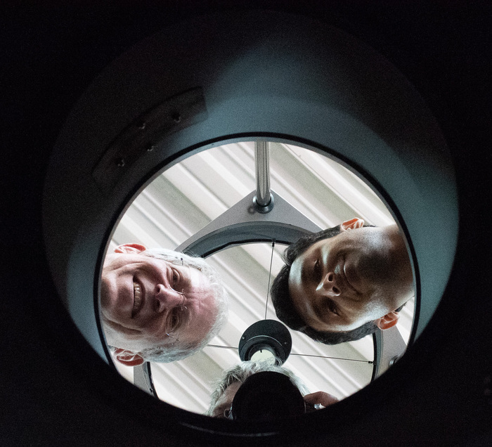 | Aart hauls that optical tube assembly ('OTA') into the observatory. |