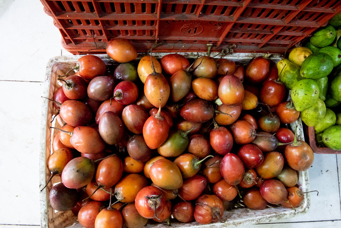 | Kai and I wander around downtown, in the Candelaria historic area. I eat everything I can buy, including this concotion of green mangos and lime. |