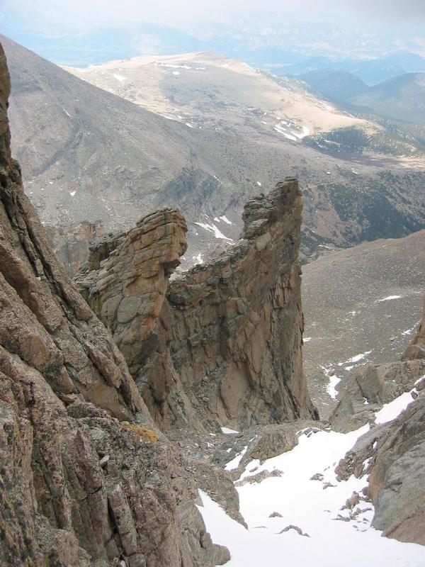 Down the Flying Buttress, NE toward the trailhead and Estes Park.