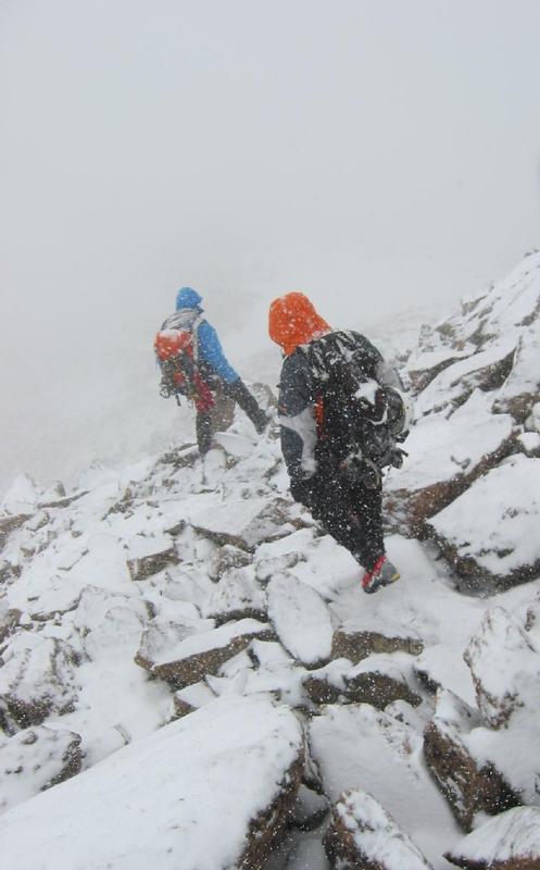 Descending the summit ridge.