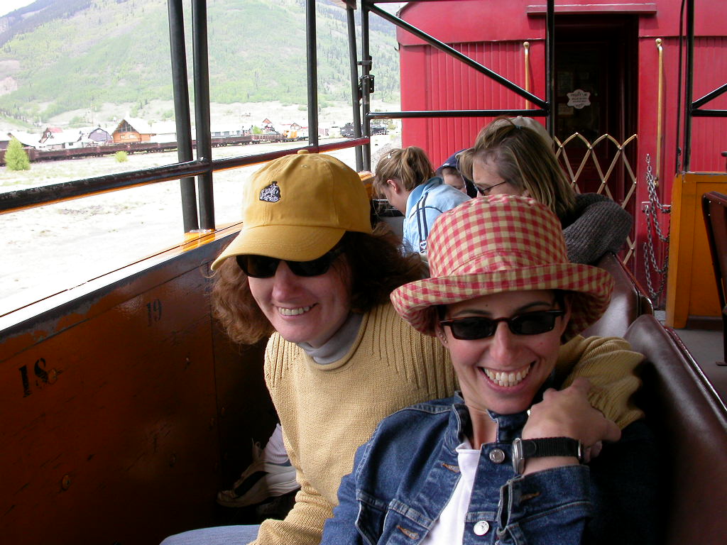 Ellen + Sarah (the former sporting her train-enthused cap).