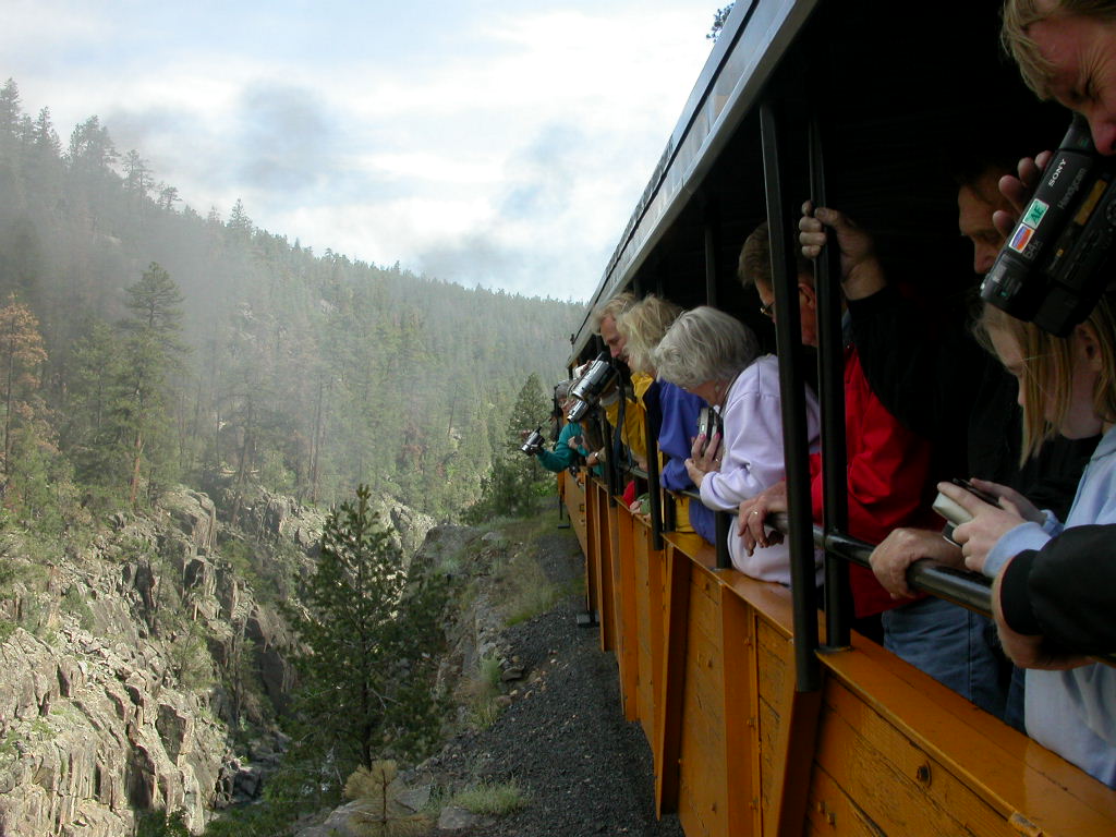 Passengers on the train record an fascinating sight off-screen to the lower-left.