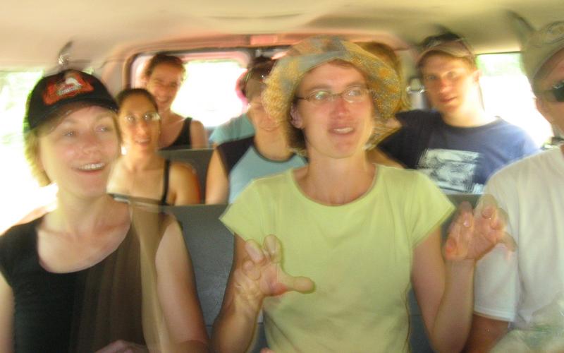 Corn takes control in the van en route to canoeing.