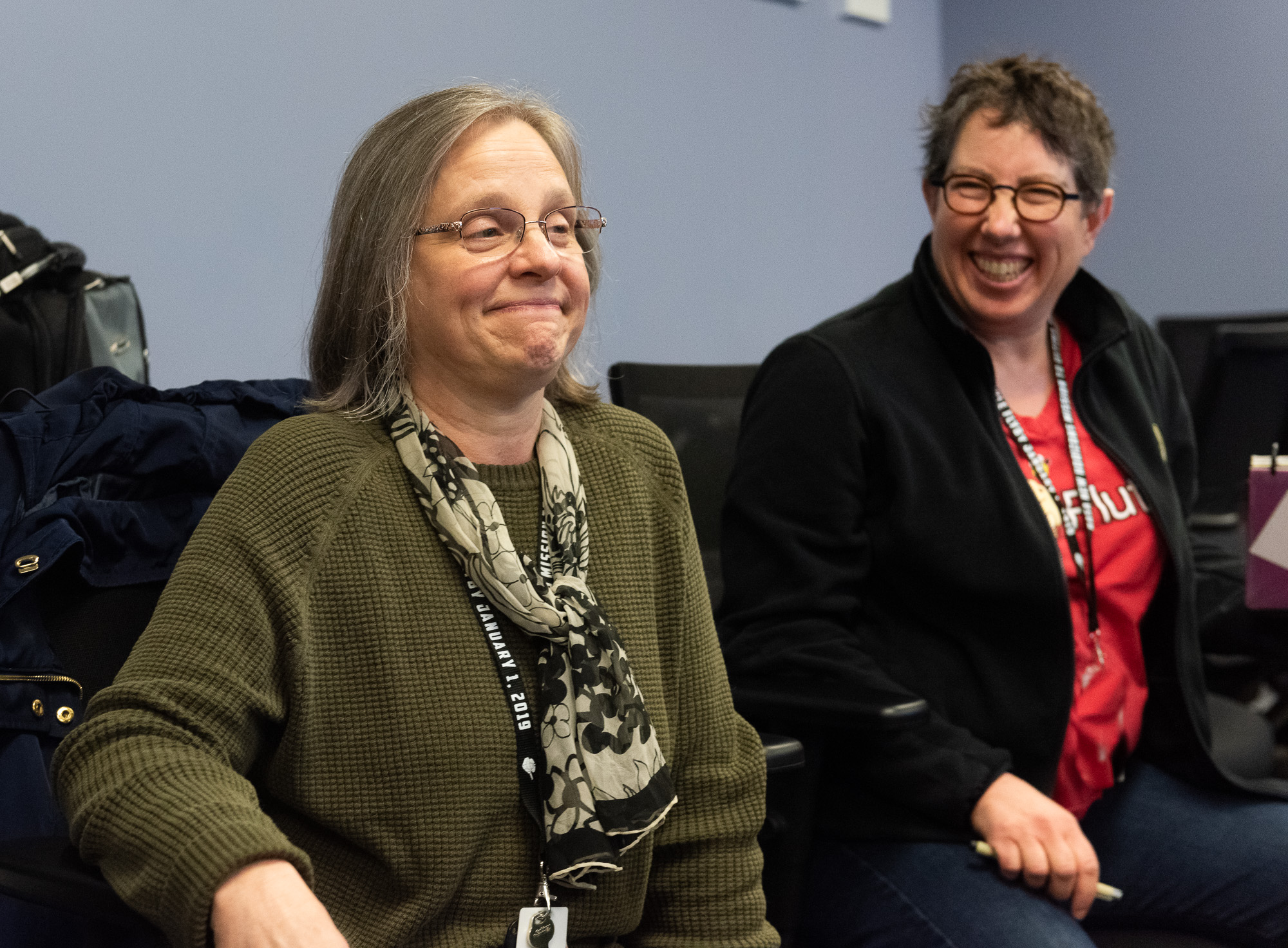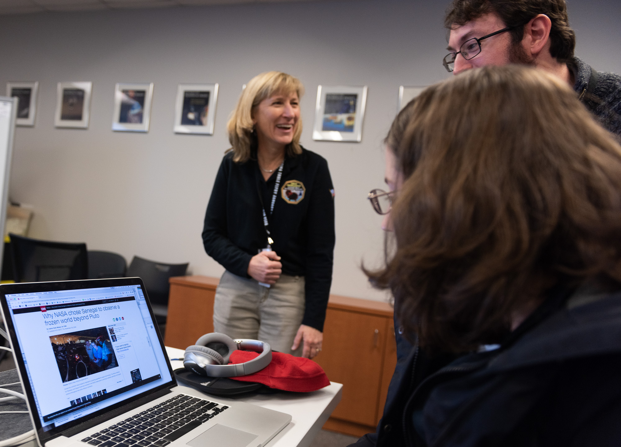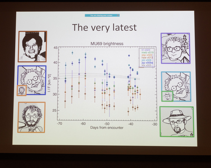 | Simon, Amanda, and Anne -- all veterans of multiple MU69 occultation campaigns -- give Marc input on fits to the light curves and occultation data. |