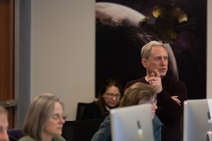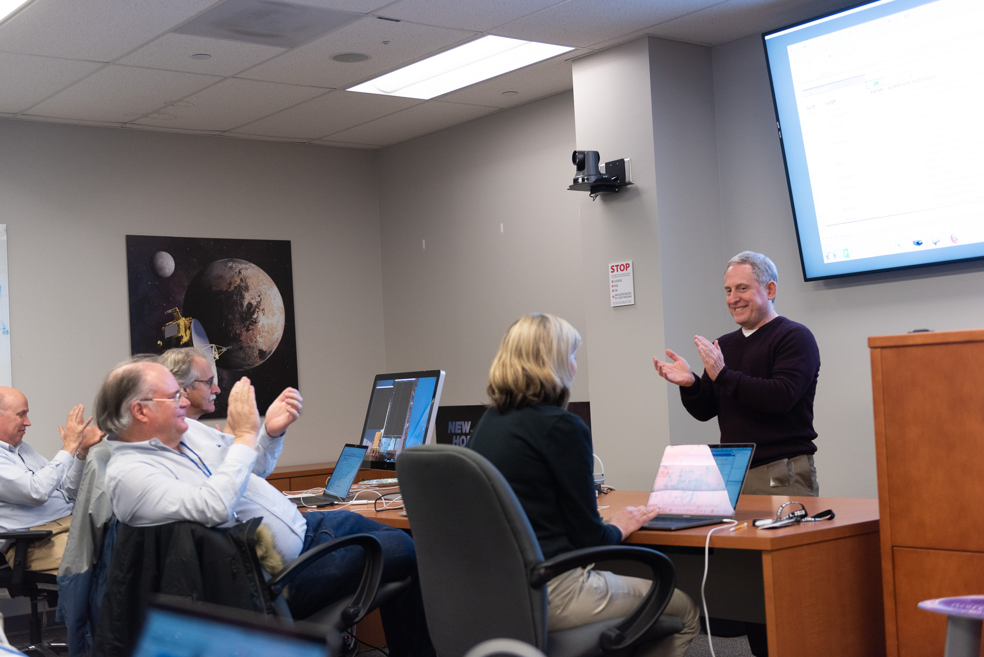 | Derek Nelson, center, is the head of New Horizons OpNav at KinetX. |