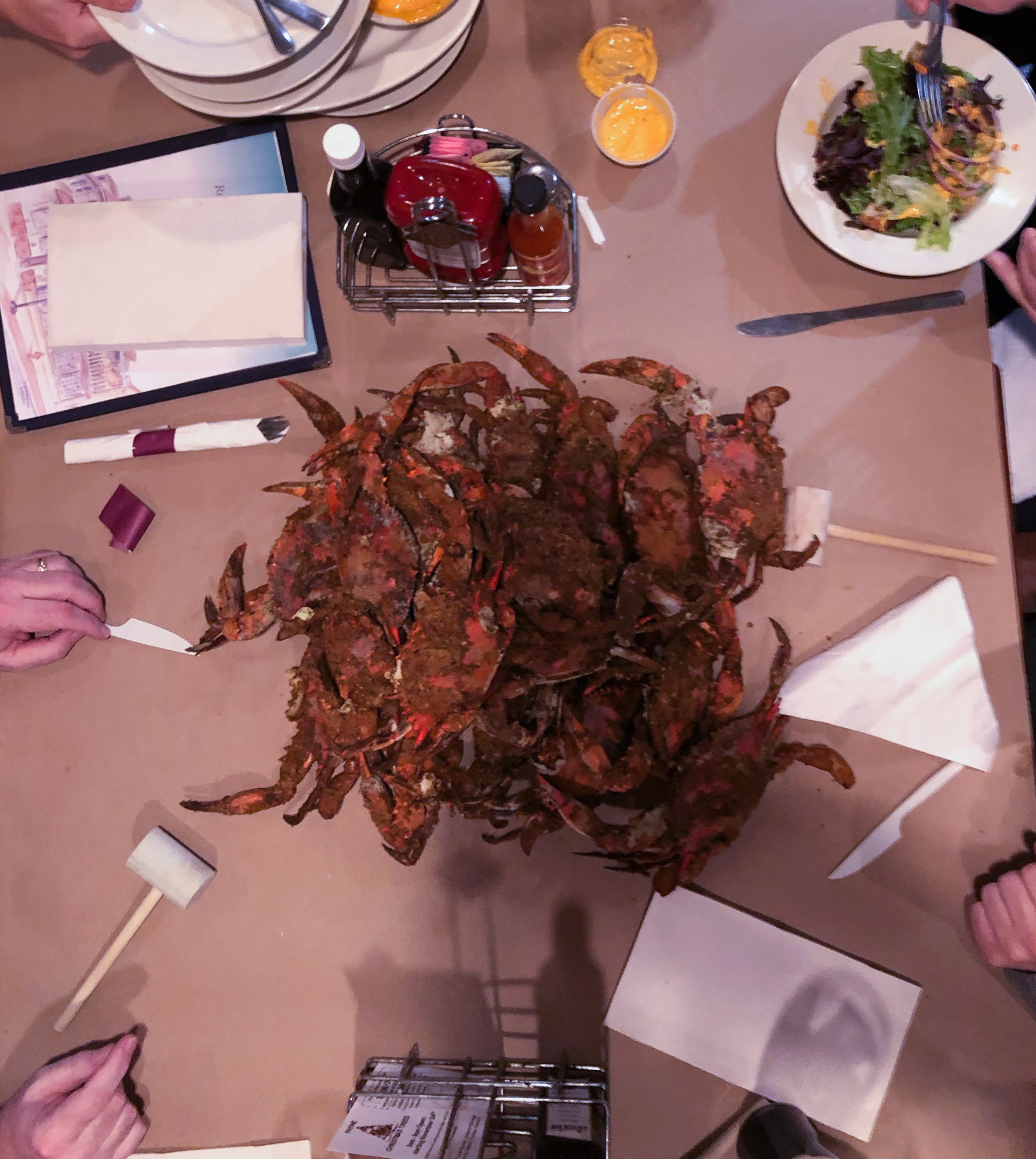 | Hazard team takes the evening off for some Maryland crabs. Cindy is a big crab afficionado and we are lucky to have her showing us the true path! |