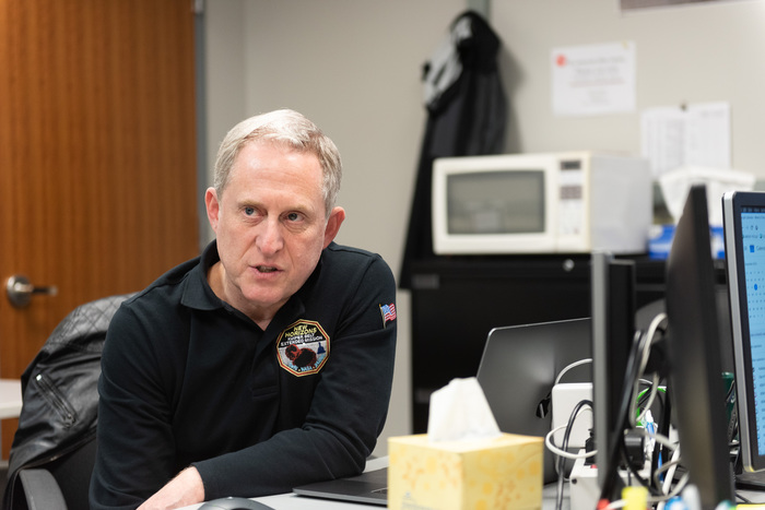 | Doug Mehoke gets the entire hazard team up to speed on damage probabilities. |