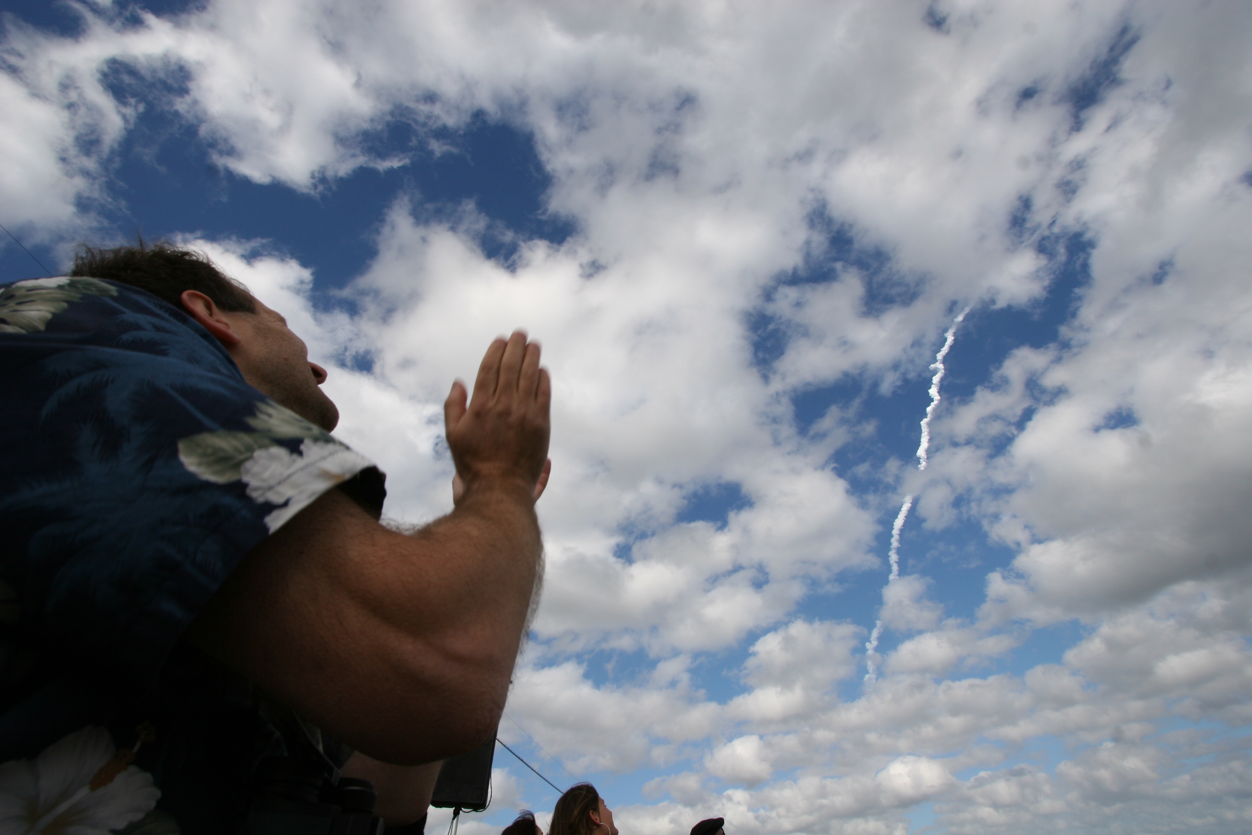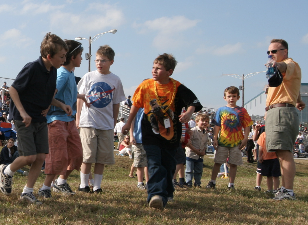 | An unanticipated problem: what to do with the kids of 1400+ people watching the launch? A game of Red Rover runs until a minor injury is had. |