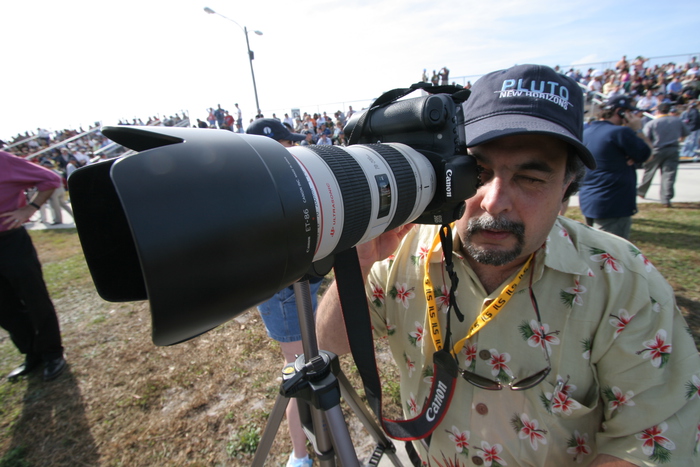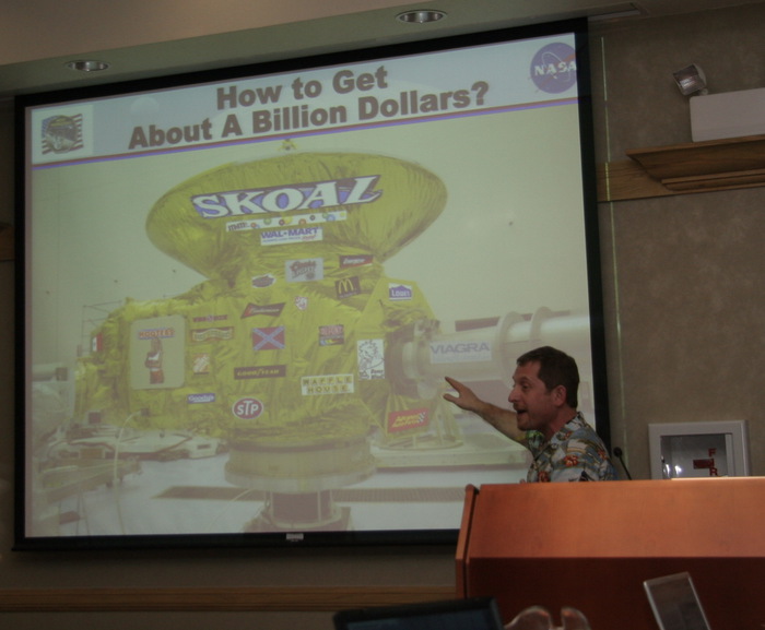 | Hal takes a picture of his boss. Note the small Pluto-the-dog cut off by the NASA camera on Alan's left. |