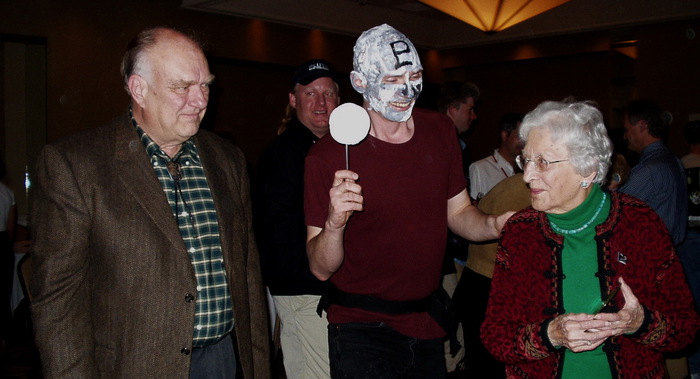 | "Alan -- you asked me if I could dress up as Pluto for the reception? I didn't know if you meant Pluto-the-dog, or Pluto-the-planet..." (And that's Charon in front of me.) |