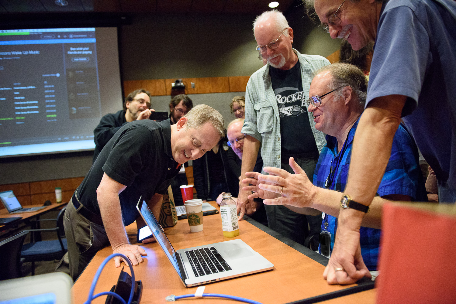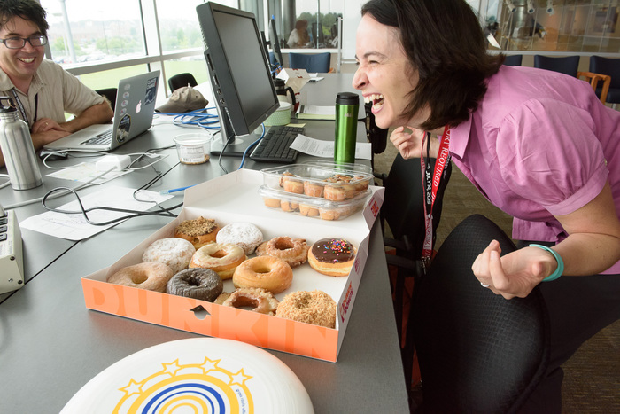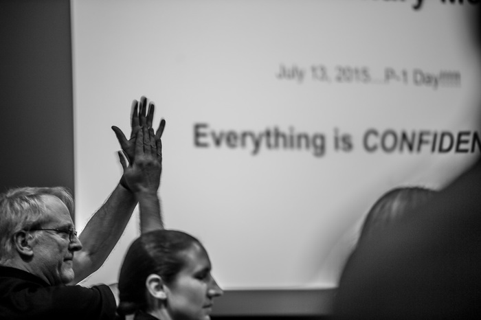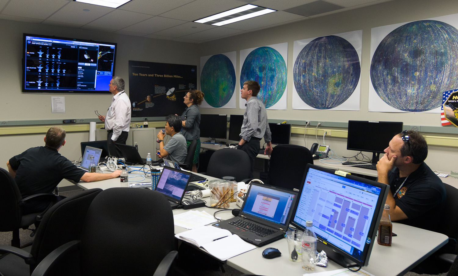 Usually APL is a secure 'no photos' zone. But New Horizons is a historic mission, and it would have been a loss to not be able to document the human side of the encounter. Through special arrangement with the mission and APL, several members of the New Horizons team were given permission to take pictures in APL's Building 100, where the Science Team was based. Although I spent most of my time doing mission work, I usually took my camera with me, and was able to photograph the team freely throughout the encounter. The team was spread over a half dozen large rooms at APL, working in very close proximity for most of the encounter. Many of the engineers and managers are in Building 100, although some are on APL's main campus.