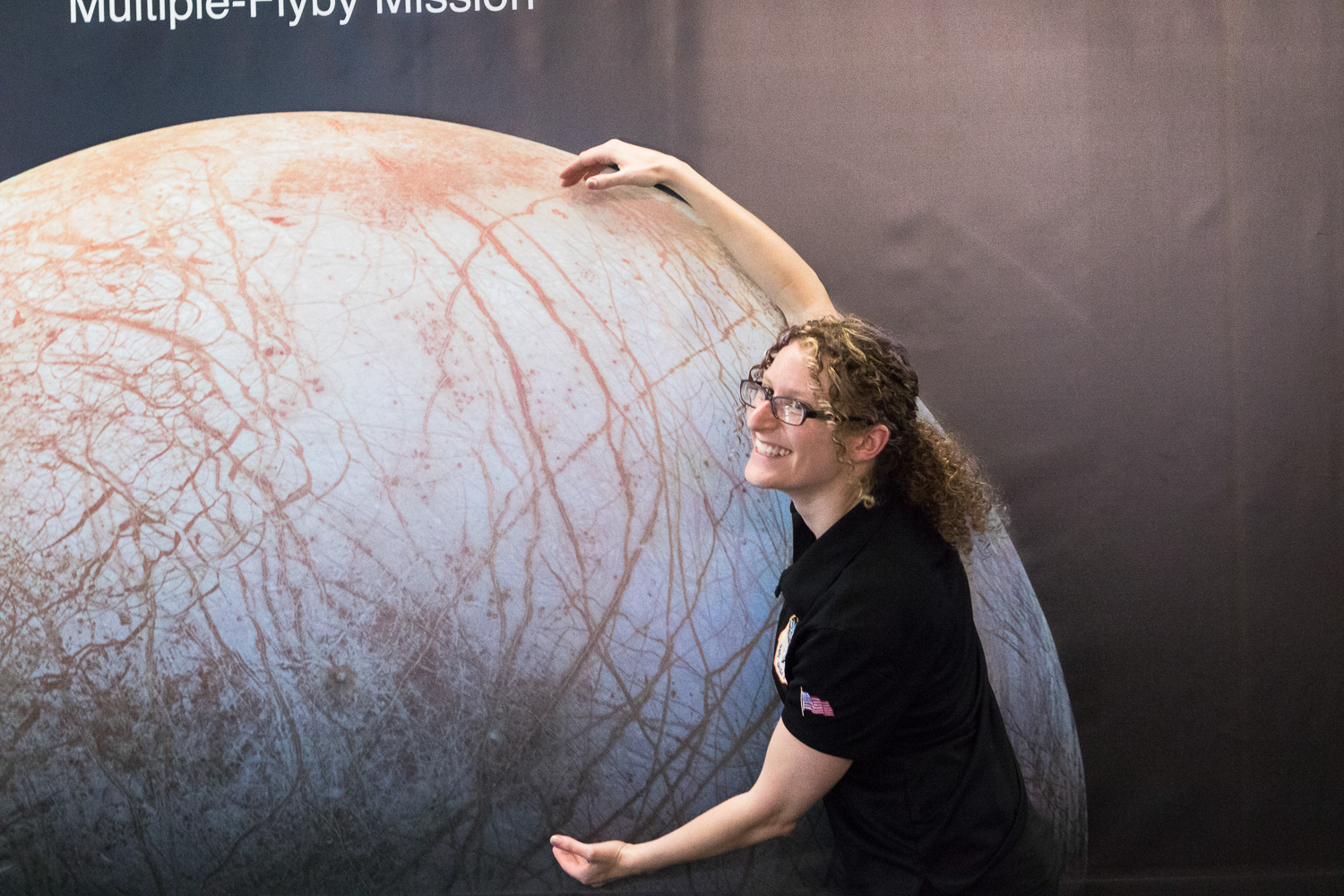 | Kelsi Singer hugs her third-favorite satellite. Photo by Stuart Robbins. |