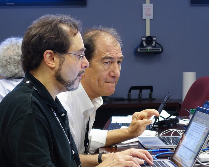| Joel Parker and Randy Gladstone are transfixed by some great data. |
