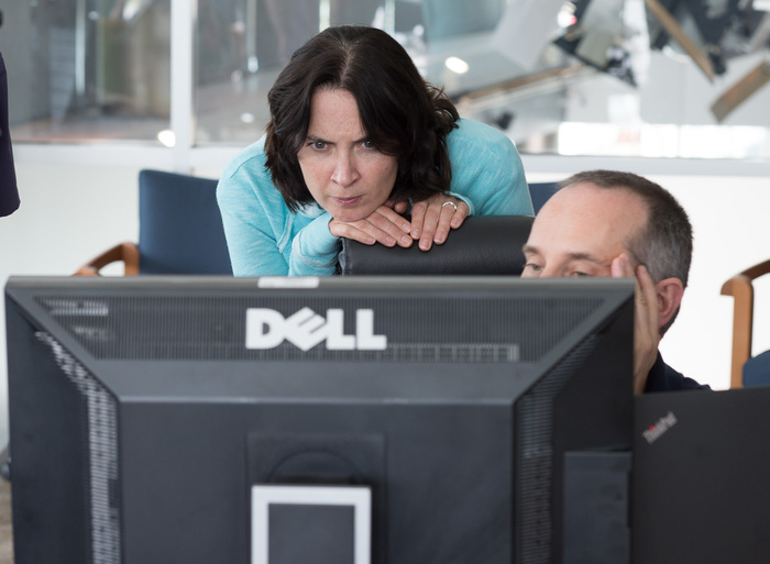 | Laurie Cantillo and Alan Stern strategize on media materials. |