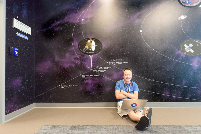 | Gabe Rogers and Chris Hersman, with New Horizons. (And that's MESSENGER just to the right, which successfully crashed into Mercury in 2015.) |