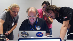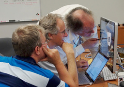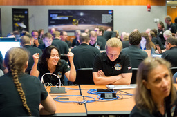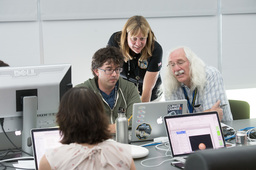 Most of the photos here show other people doing things, and not me, so some people have asked what I was doing at the encounter. I did much of the planning for the ring search and satellite search observations. (We found none of either.) And a lot of my work at the encounter dealt with maintaining and upgrading GeoViz, the visualization tool used by the science team to plan and analyze observations. I did a entry on NASA's blog about GeoViz, and a separate blog entry entry about photographing the mission.