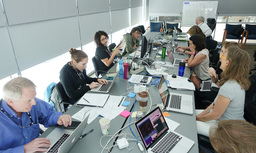Usually APL is a secure 'no photos' zone. But New Horizons is a historic mission, and it would have been a loss to not be able to document the human side of the encounter. Through special arrangement with the mission and APL, several members of the New Horizons team were given permission to take pictures in APL's Building 100, where the Science Team was based. Although I spent most of my time doing mission work, I usually took my camera with me, and was able to photograph the team freely throughout the encounter. The team was spread over a half dozen large rooms at APL, working in very close proximity for most of the encounter. Many of the engineers and managers are in Building 100, although some are on APL's main campus.