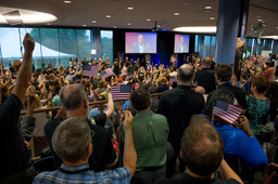 Some events, especially on the encounter day, were at the Kosiakoff Center, which allows cameras. And none of us were allowed in the Mission Operations room, across the street on APL's main campus. For those, you'll have to see the photos from NASA's official photographer Bill Ingalls, and NH mission photographer Michael Soluri.