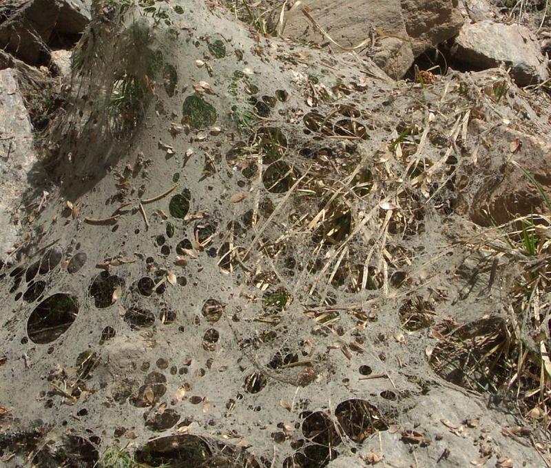 What is this? It was a fine mesh of that appeared to be left after snow melted from under it. Cobwebs by demeted spiders? Dirt & debris? All fine, except that this was the only place we saw it.