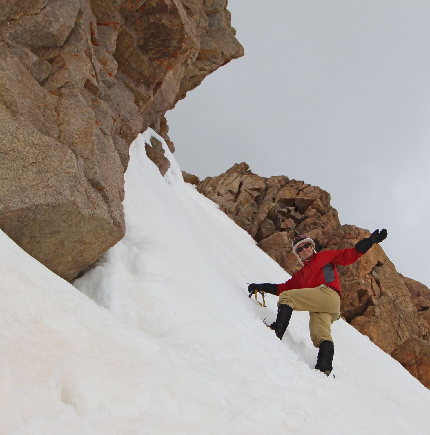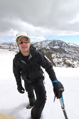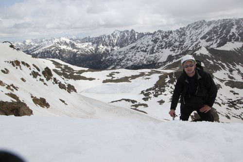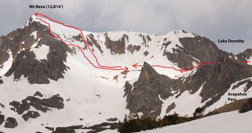 David and I went up one of the snow couloirs on Mt Neva (12,814'), up the 4th