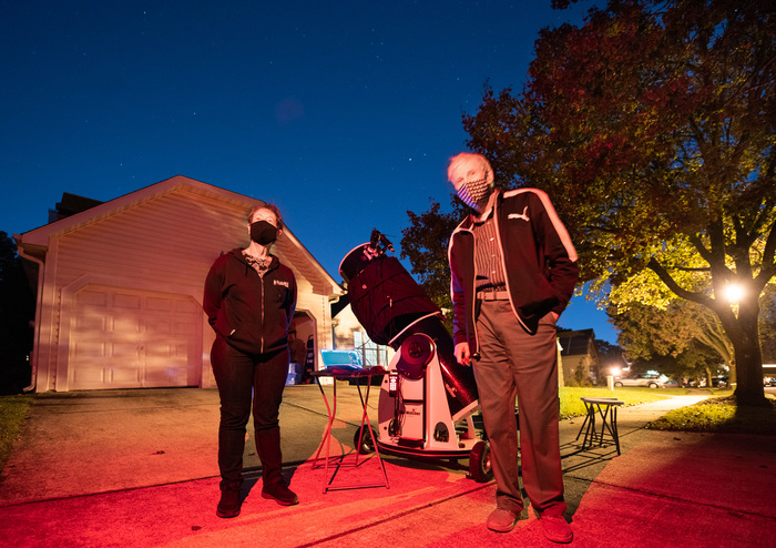 | I picked up the telescope and camera from Joan and Doug Dunham, who live not far from me near DC. They are the founders of the IOTA = International Occultation Timing Association -- the amateur group which has been responsible for the vast majority of the asteroid occultations every observed. How many have they observed? "Oh, I don't know. Maybe 2000 or 3000? We observe a lot of bright ones from our driveway. And we have a darker site in Arizona that we get some faint ones from." They have a 16-inch SkyWatcher at both locations. I had two practice nights with the Dunhams, to find the field on the sky. The occultation star is 17th magnitude -- it's very faint, and only visible in a long exposure (6 seconds from the DC metro area!). |
