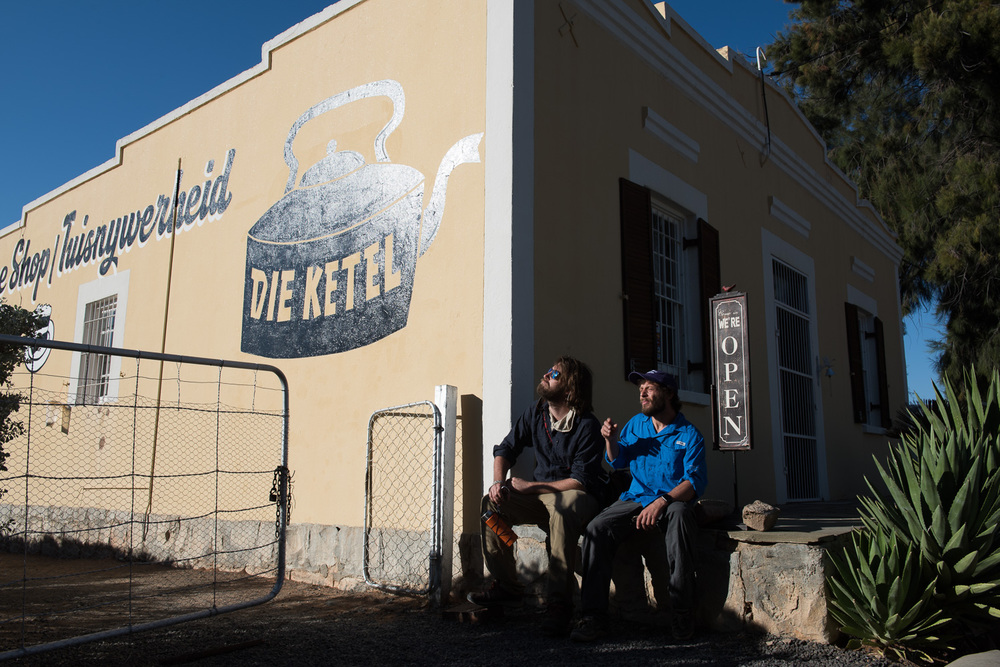 We thought we were dragging (took us a long time to get fuel and jerry cans, and we had the long stretch of dirt road). But it turns out we got to the Karoo well ahead of most of the other groups, thanks to Aaron's quality motoring. Our guest house was ready for us around midnight when we showed up. In the morning, we meet up with Paul, who is staying at our place as well.