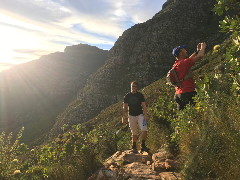 Looks like Charles is photographing a protea, which is the South African national flower. An amazing fact I read: there is a greater number of plant species on Table Mountain, than in all of the UK. It could well be true: Table Mountain tops out at 1100 meters, which is only slightly lower than the 1300 meters of Ben Nevis, the UK's highest point.