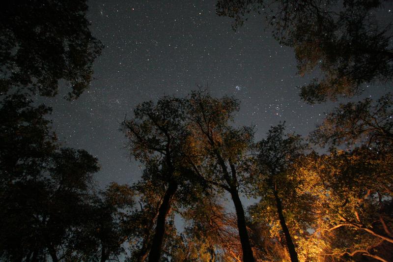 Stars above the campsite. Note Andromeda galaxy, Double Cluster, Pleiades, and Taurus.