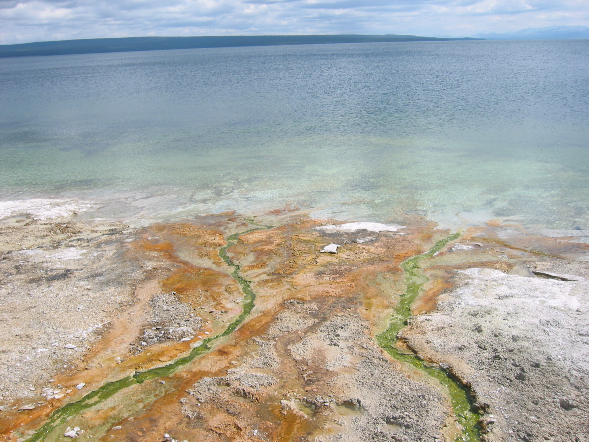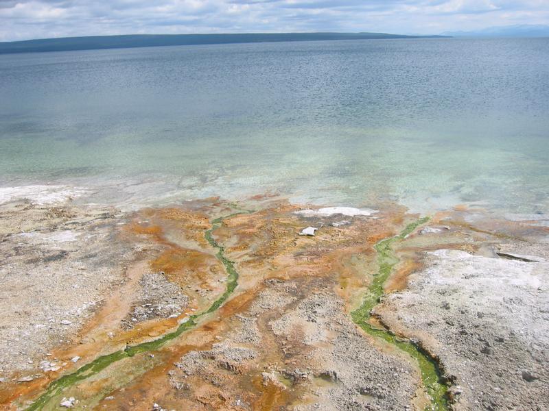 Yellowstone Lake, near the fishing hole geyser, where apparently one could catch a fish, cook it in the hole, eat it, and clean up, all from one spot.