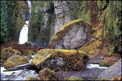 surrounding it dwarfs Wahcella Falls. The absence of maple leaves