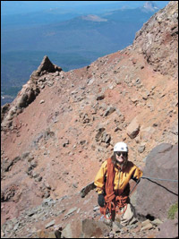 Allen Throop/Venture contributor Heather Throop climbs below Prouty PInnacle on North Sister.