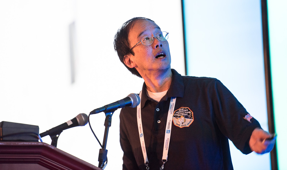Andy Cheng (APL) points at some of those beautiful LORRI pixels.