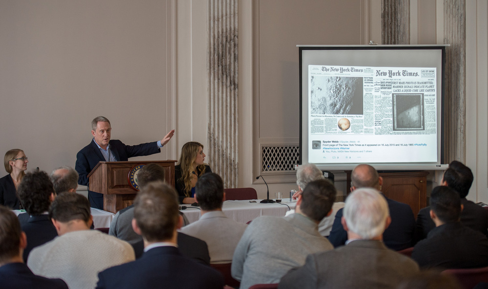 Unplanned but true: New York Times headlines separated by 50 years to the day. July 17, 1965 reads 'First Mars Photo Is Transmitted', from Mariner 4. With Alan Stern.
