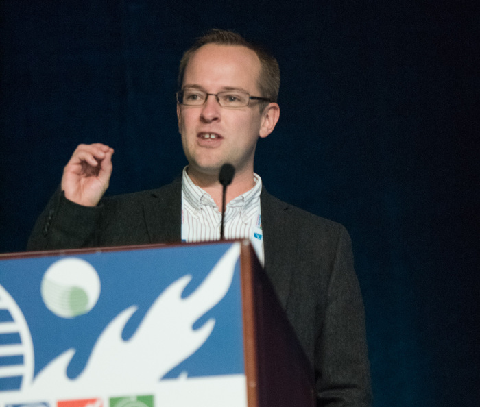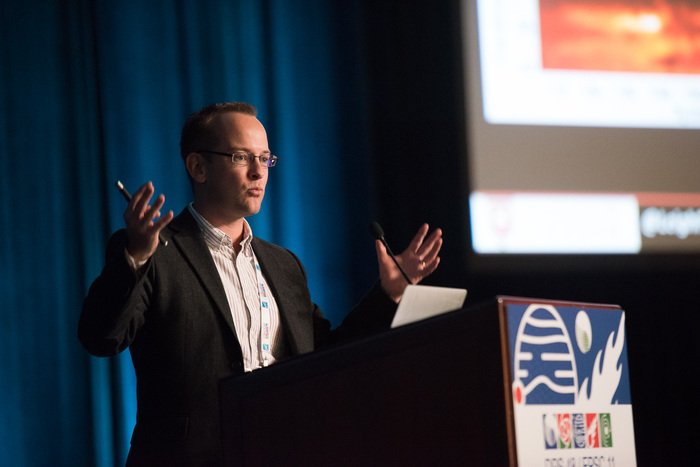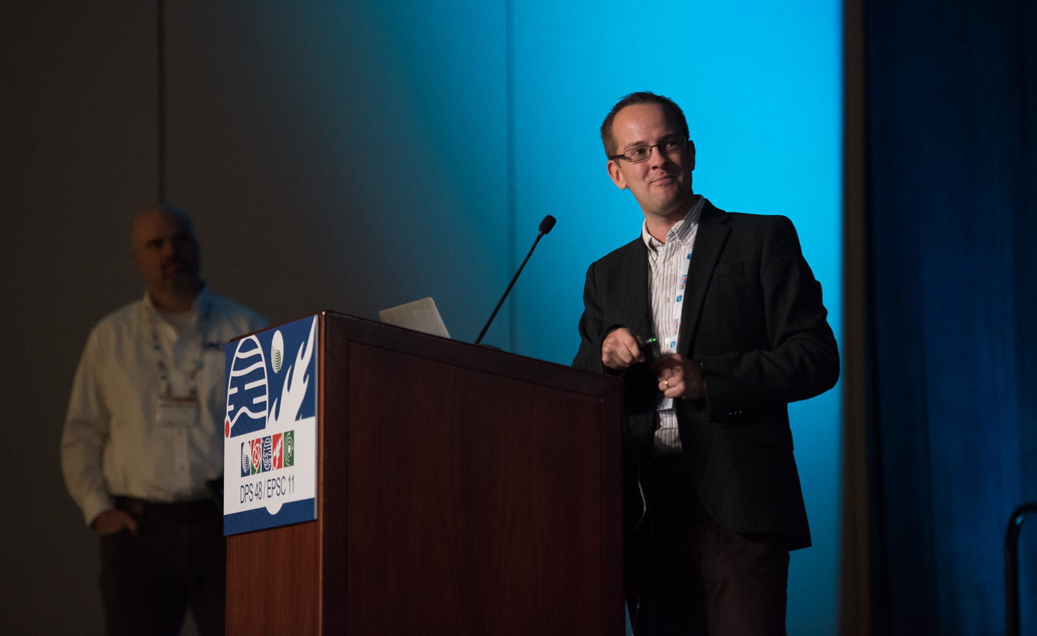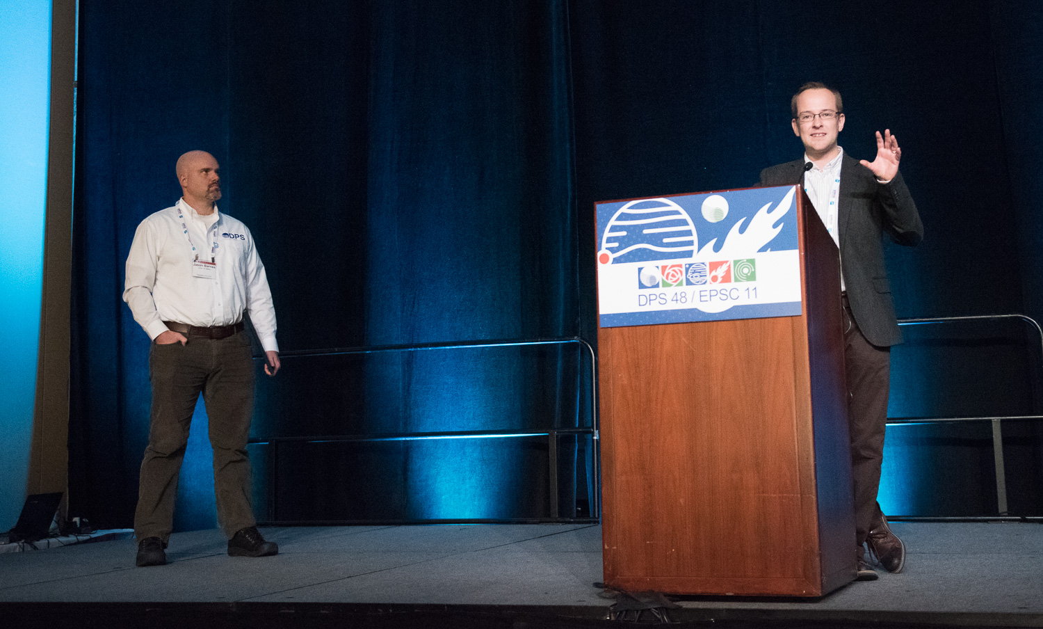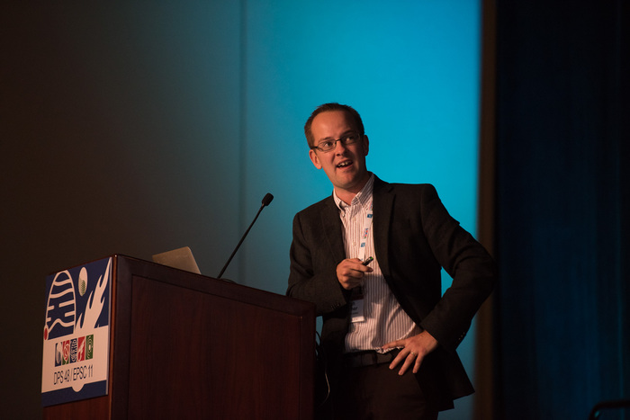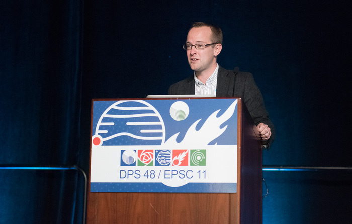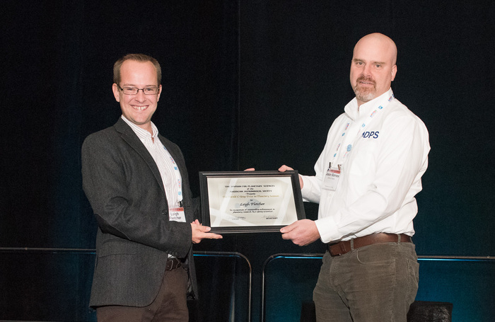 | Leigh Fletcher (U. Leicester, UK) gets the Urey prize from DPS chair Jason Barnes. |