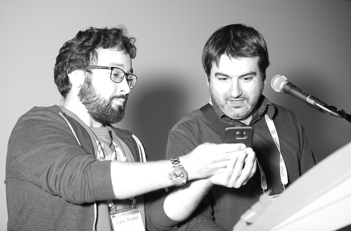 | Loic Rossi (TU Delft) and Emmanuel Marcq (U. de Versailles) catch up some some lyrics. |