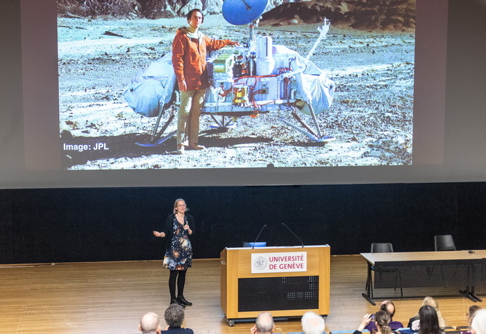 | Carrie Nugent gives the Sagan lecture at the DPS-EPSC meeting in Geneva. |