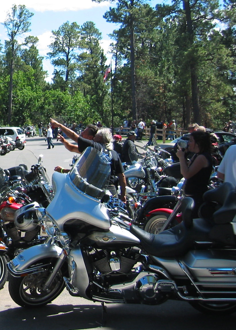 Bikers point at the paragliding party (although their gliders are still ensconced in their packs).
