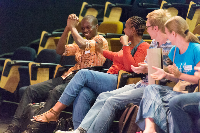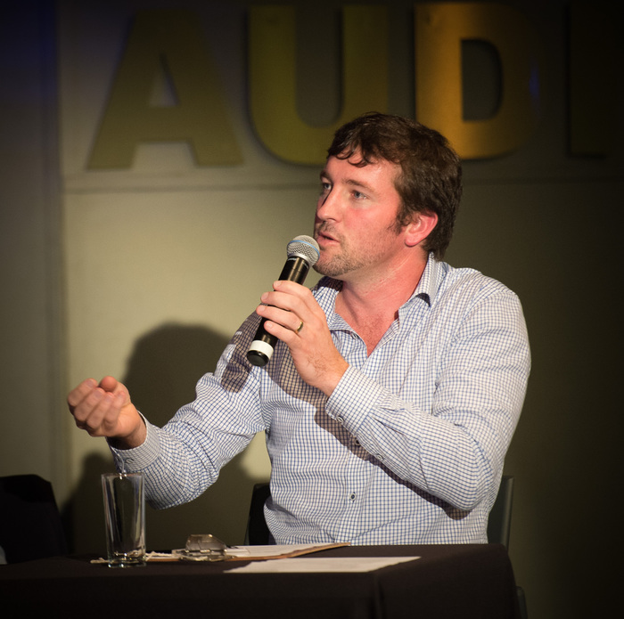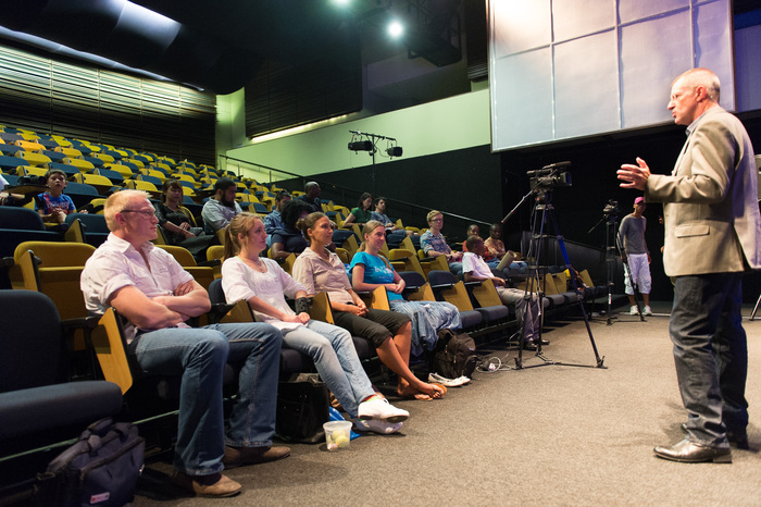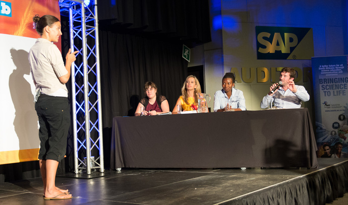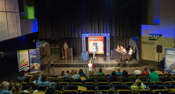 | MC Daryl Ilbury (SAASTA) starts off the morning with a quick run-down of the program at Sci-Bono. |
