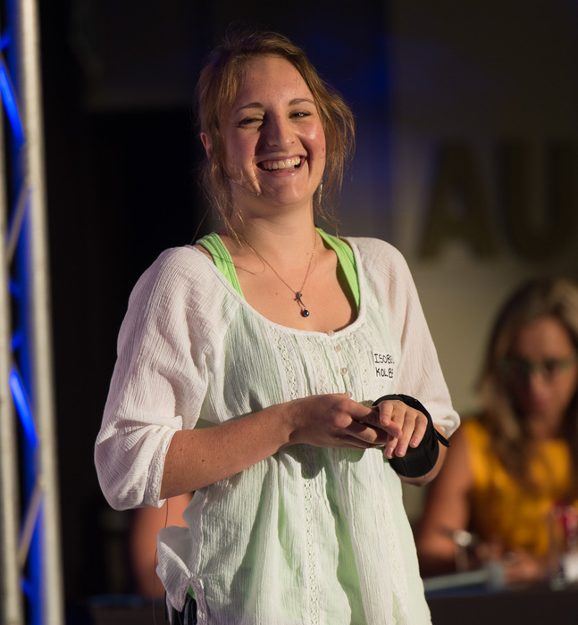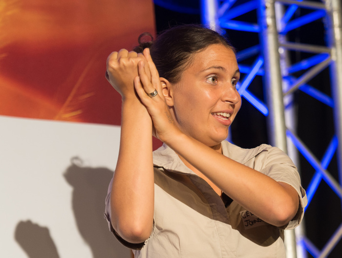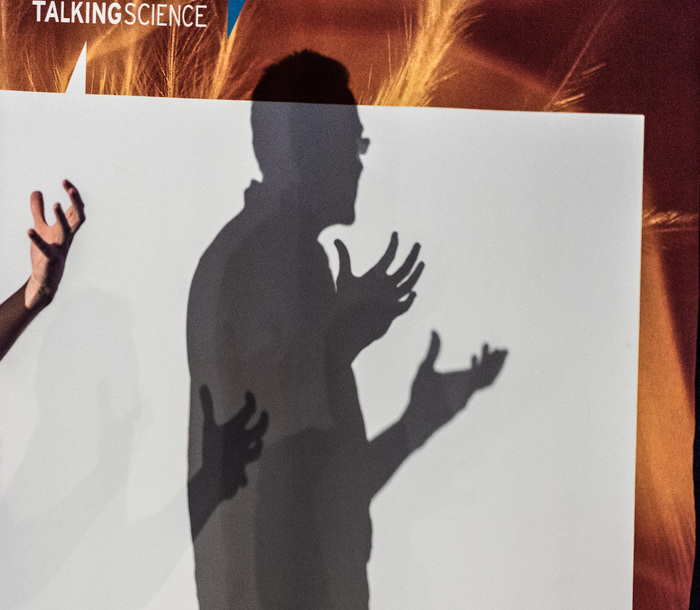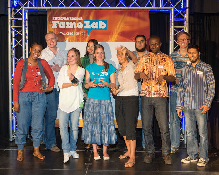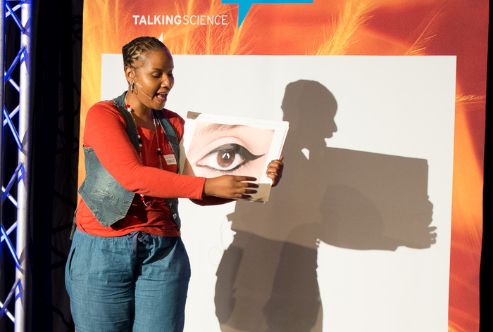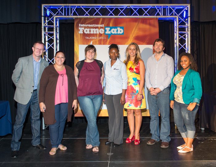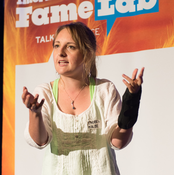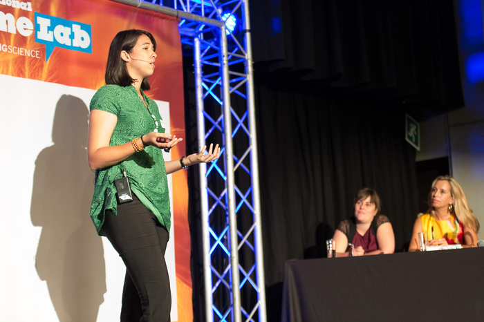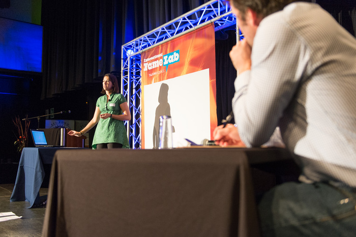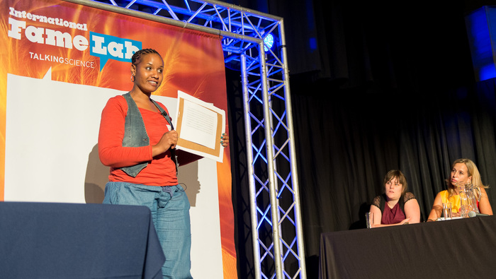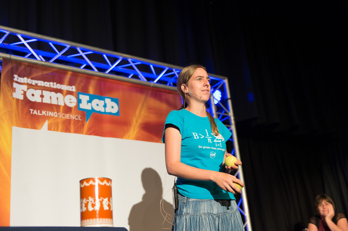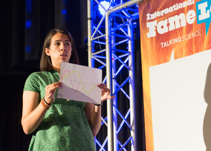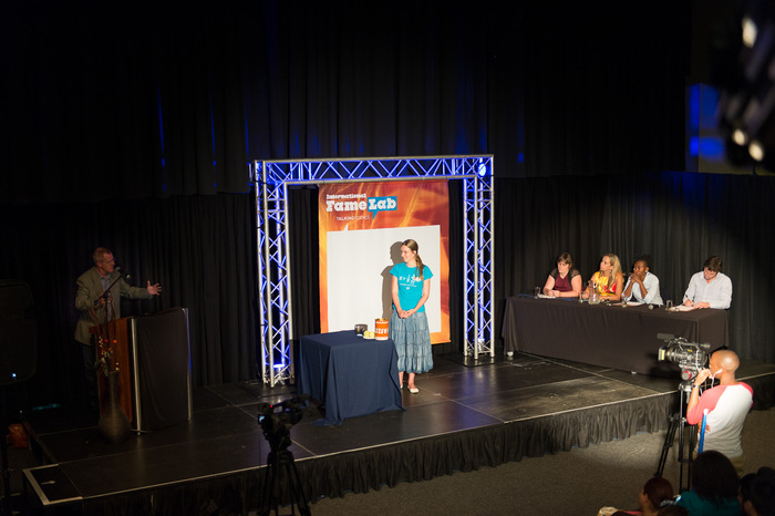 | Ansunya discusses stellar evolution. The computer is for a sound clip of a supernova explosion. No Power Point allowed at FameLab! | |