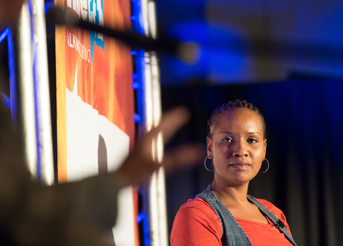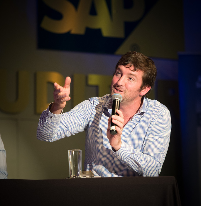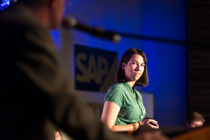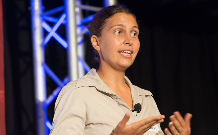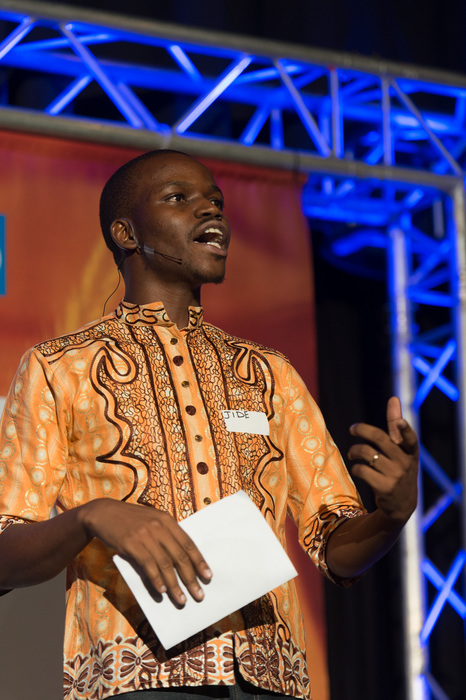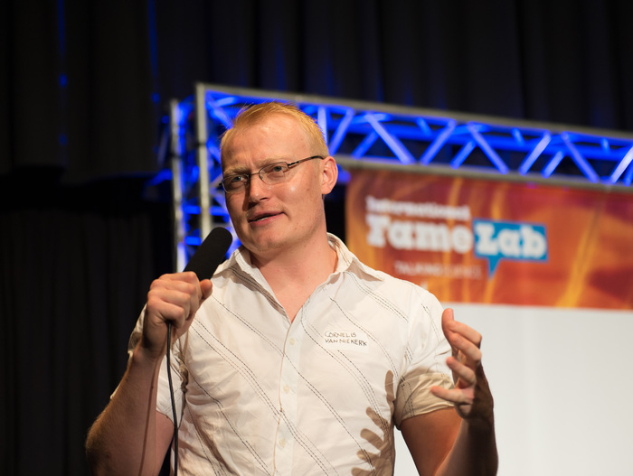 | Cornelis Van Niekerk heads to the stage to discuss lasers. | |