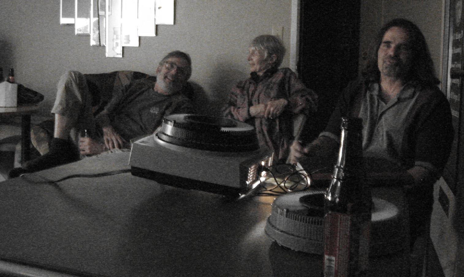Later in the evening, Mad Dog, Wife of Mad Dog, and Streak at the Juneau Ice Field Expedition exhibition.