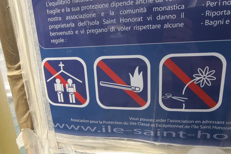 A very polite sign states that no bikinis or Speedos are allowed near places of worship, and that any flowers picked must be done so by hand.