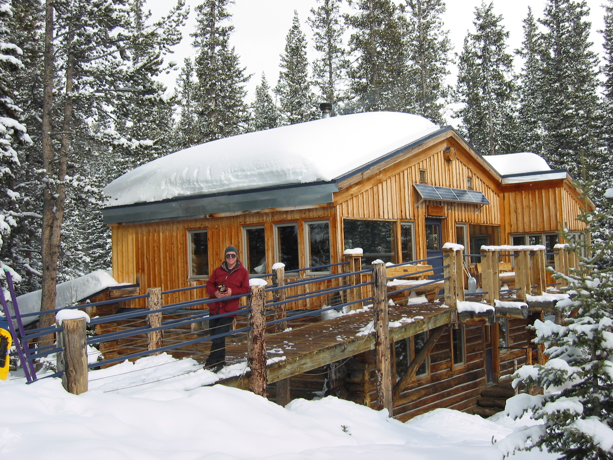 As we leave the hut for the descent. Bunks are on the bottom; kitchen is upstairs. The main windows overlook the rising canyon floor below.