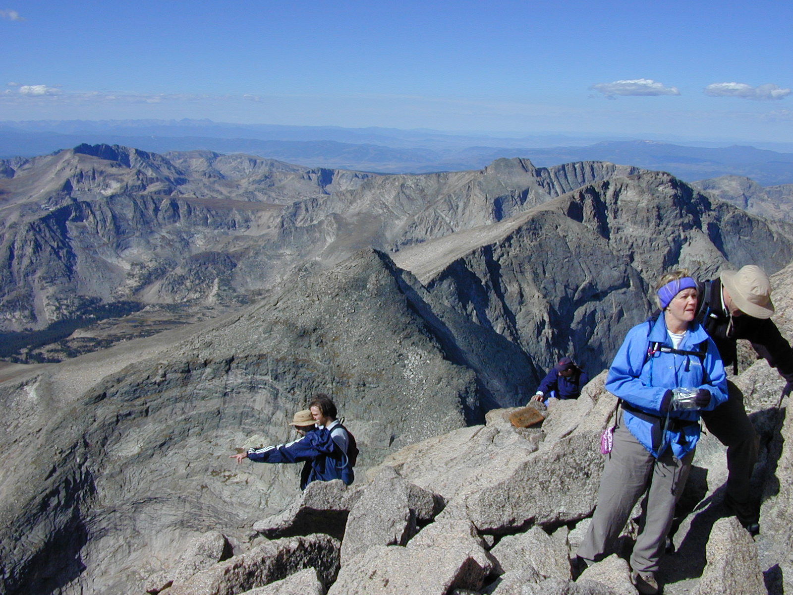 Emerging to the summit. (Note Grays & Torreys, the next-closest 14ers, as a pair of mountains on the distant horizon, 3/4ths of the way to the left. These were named for a pair of Harvard botanists, who also lost their apostrophes.)