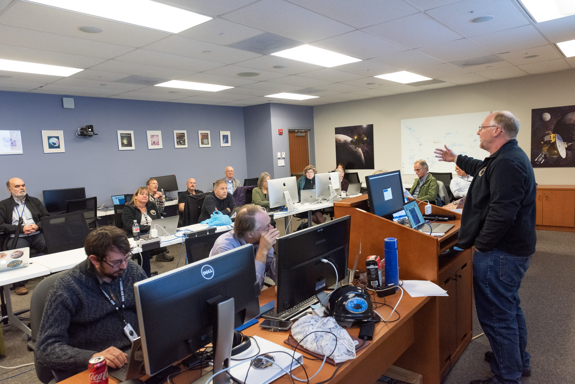 For 17 days we worked in a single room together at the Johns Hopkins Applied Physics Lab (APL), outside Laurel, MD. The culmination of this work was a decision made with the spacecraft 'stakeholders' (i.e., PI Alan Stern, managers, and engineers), where they chose whether to fly the Prime trajectory, or the Alternate.