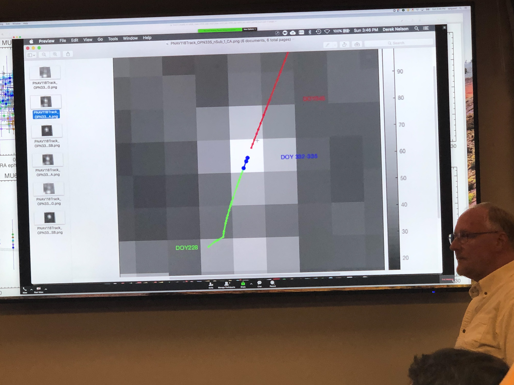 | John, Marc, Simon, and John look at debris in the way at the primary orbit (inner circle). But no -- it's just stars. |